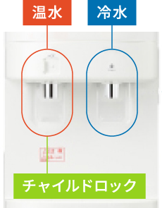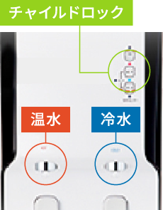 温水・冷水共にチャイルドロック機能が標準装備!小さいお子様がいるご家庭でも安心です。