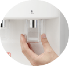 ウォーターサーバーの温水口から出るお湯は約85℃あるので、小さなお子さまのいらっしゃるご家庭では充分ご注意ください。